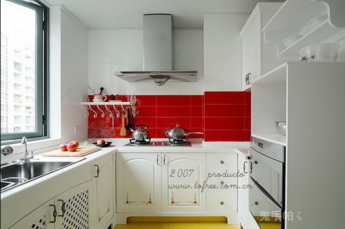 1)红砖,如果要做田园风格的橱柜,肯定要用红砖,用它砌出来的立柱会比较宽,再在外侧贴上漂亮的小墙砖,就很有小资味道了,但这样也牺牲了储物的空间,比较小的厨房,建议还是不要选择红砖来做砖砌橱柜。